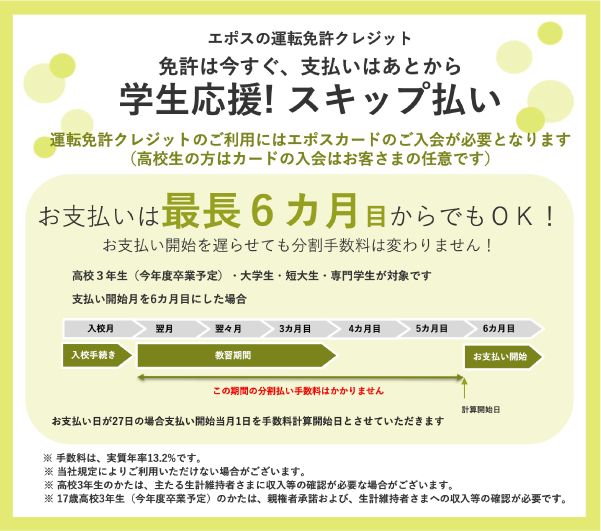 - 途中退校の場合、退校日から1年以内であれば入学金・オプション料以外の未受講分の教習料金は返金いたします。